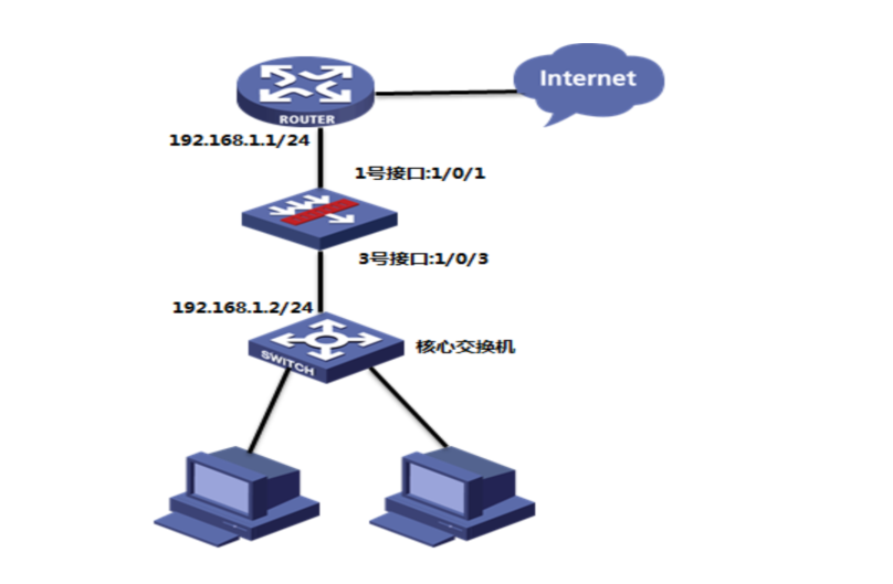 如下组网图所示,在原有的网络中增加防火墙来提高网络安全性,但又不想对原有网络配置进行改动,所以需要防火墙采用透明模式部署;其中GigabitEthernet 1/0/1接口接原有路由器的下联口,GigabitEthernet 1/0/3接口接原有的交换机上联口。
