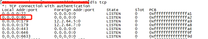 dis tcp 命令显示路由器开启80端口