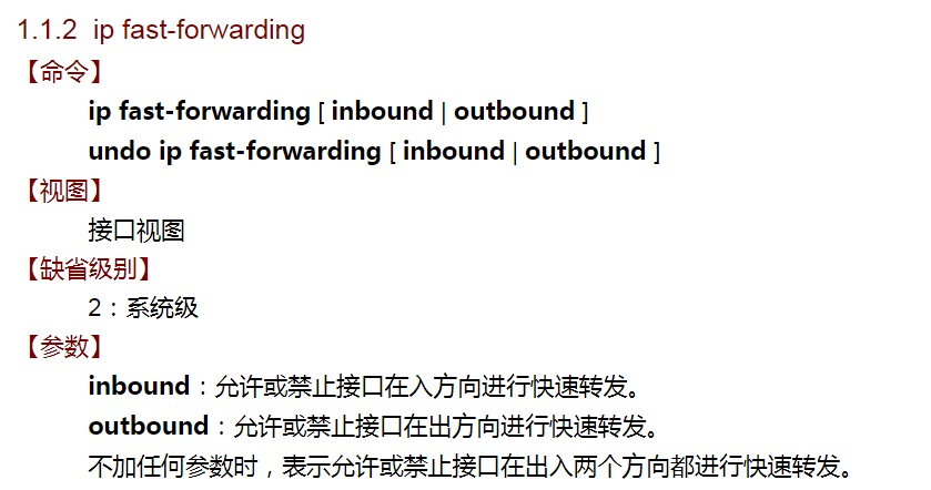 命令是:ip fast-forwarding [ inbound | outbound ]