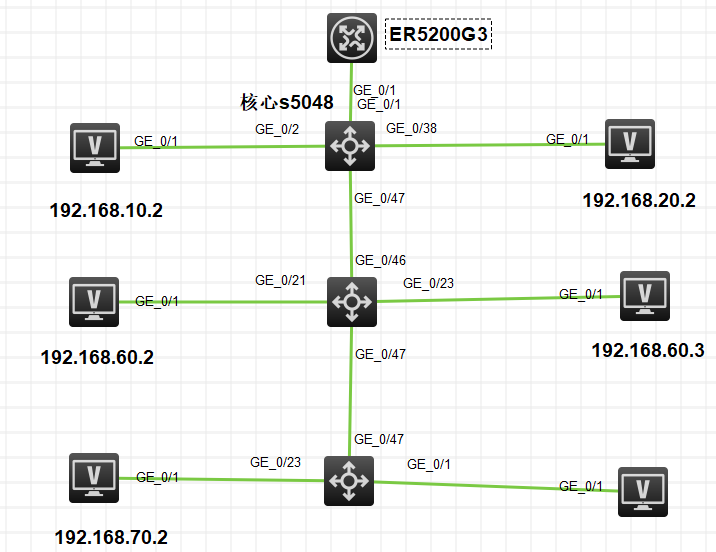 公司一条移动的专线400M,一条电信的100M,现在划分了VLAN10, 20, 60,70,想要控制各个vlan网段的网速,vlan10控制为50m,vlan20控制为100m,vlan60控制为200m,vlan70控制为100m