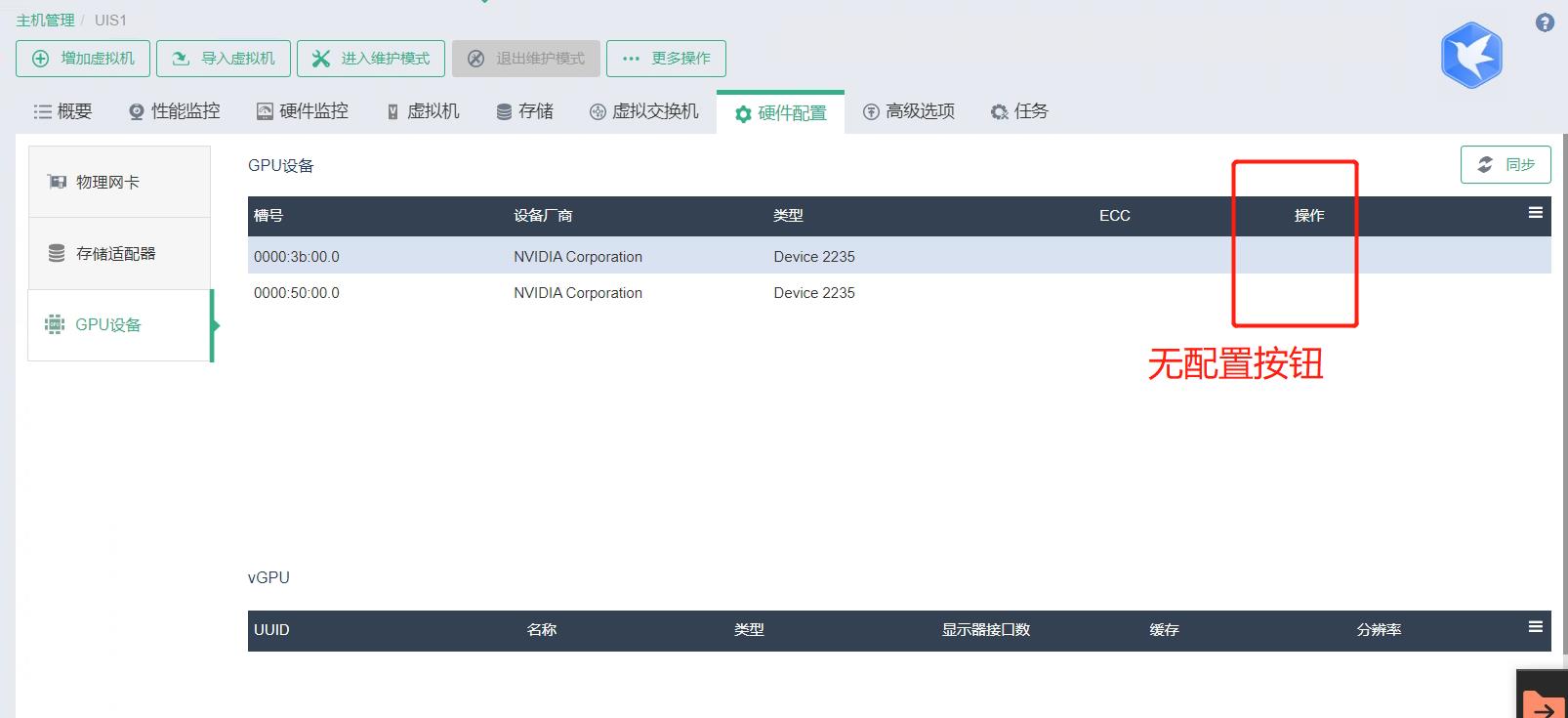 根据《UIS超融合产品vGPU配置指导》操作,添加vGPU没有指导手册中说明的添加按钮,请问是授权问题还是什么问题呢?