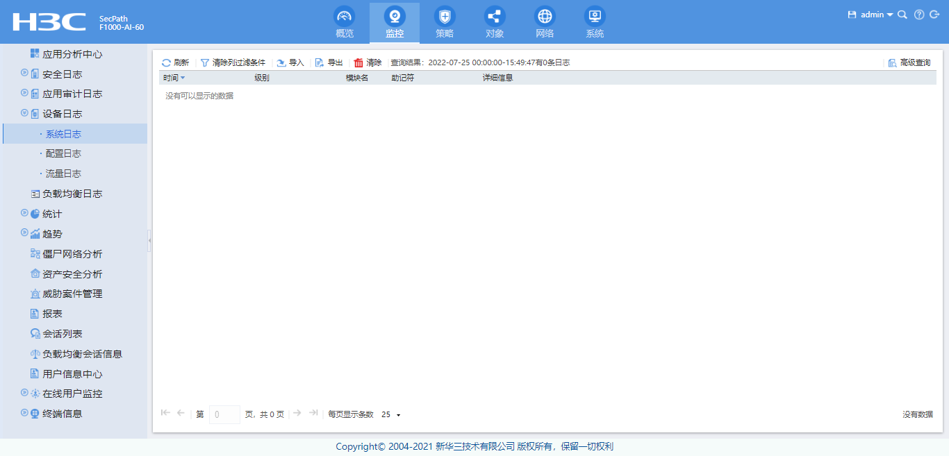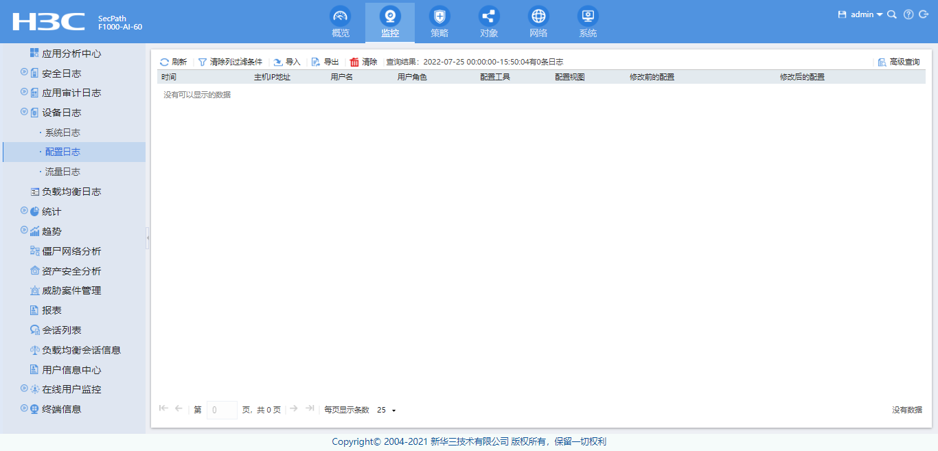 防火墙Web界面系统日志和配置日志无显示,请教一下是缺了什么吗?