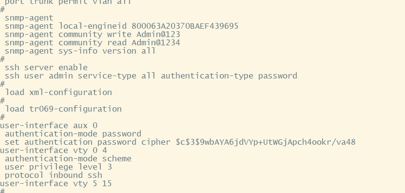 2.设置用户接口上的认证模式为AAA,并让用户接口支持SSH协议