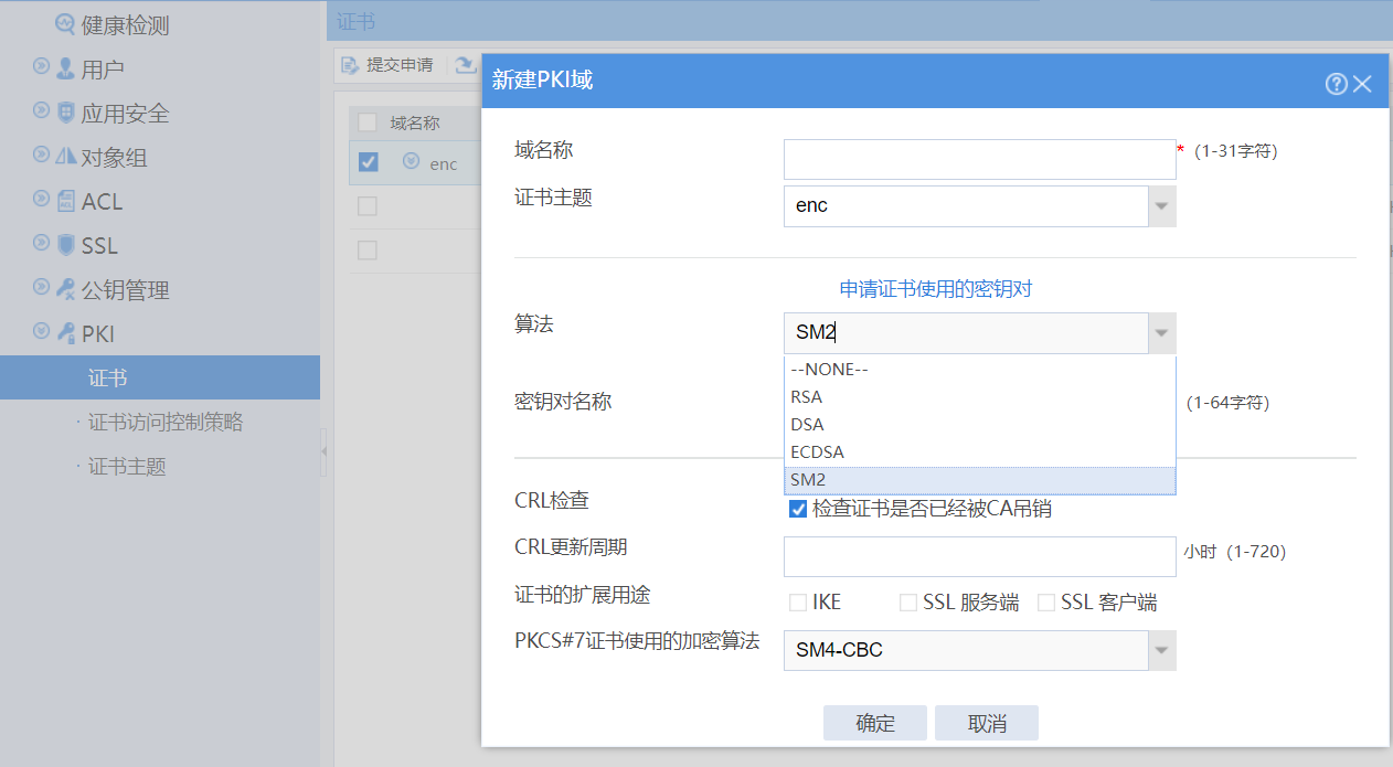 防火墙做国密IPSec VPN需要用到国密证书,我自己搭的证书服务器只能申请RSA算法的证书,SM2算法的证书只要是申请就会提示被拒绝申请,请问下是不是要找相关机构申请国密证书才行