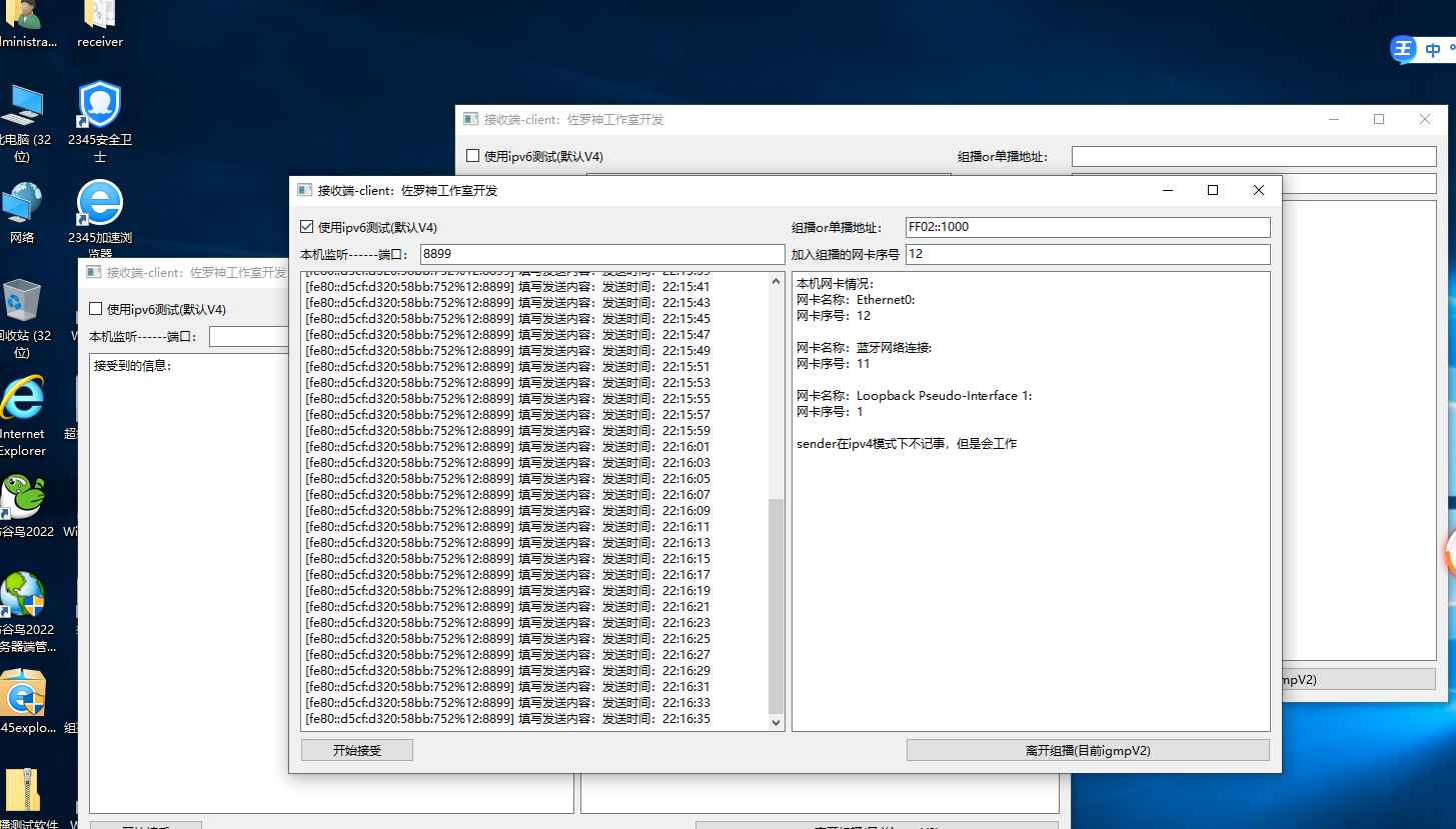 window 10系统可以正常测试ipv6组播