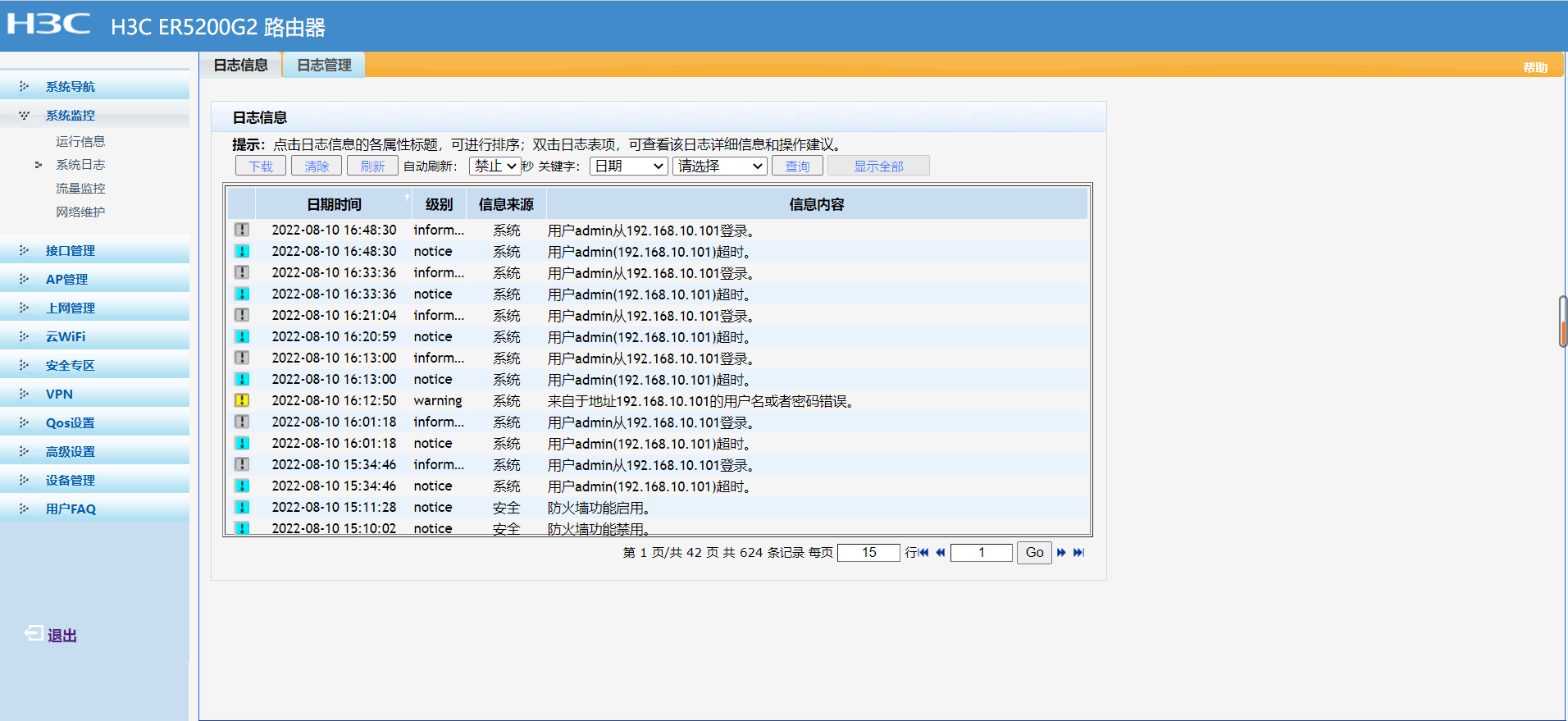 我客户端通过 VPN访问,但是路由器这里没有任何的日志记录