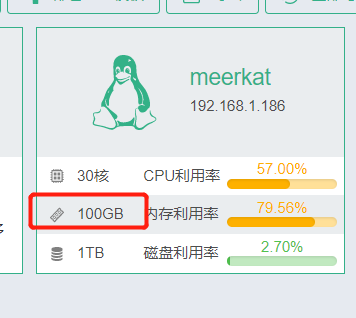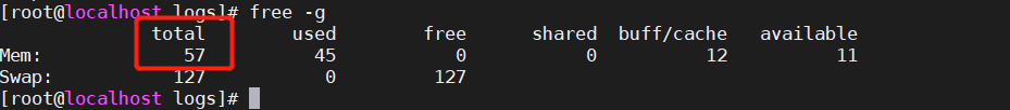 CentOS7 分配内存为100G 但是实际在操作系统查到内存只有57g