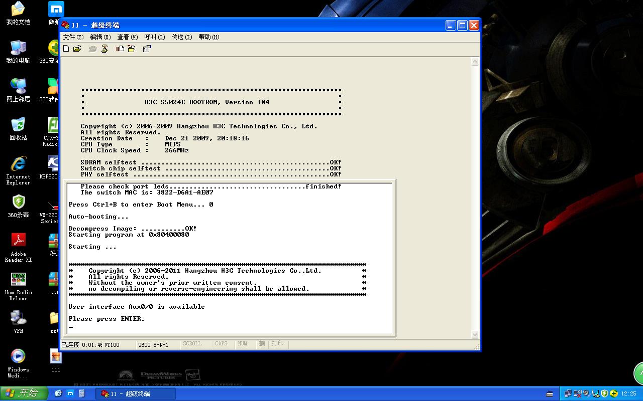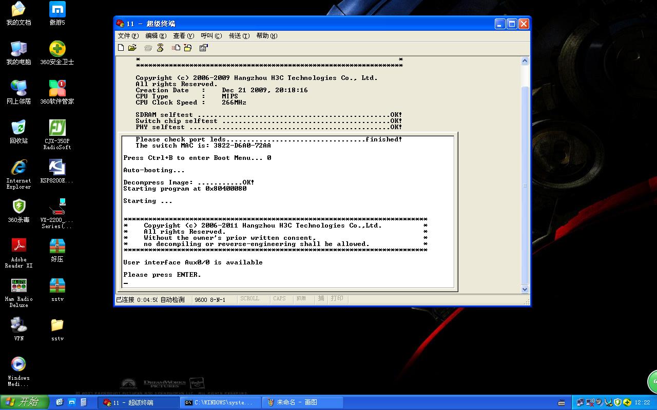 下面是2台交换机自检信息。自检完后按回车没反应,貌似需要输入用户名和密码,是隐藏的,看不到,但是不知道用户名和密码是多少。