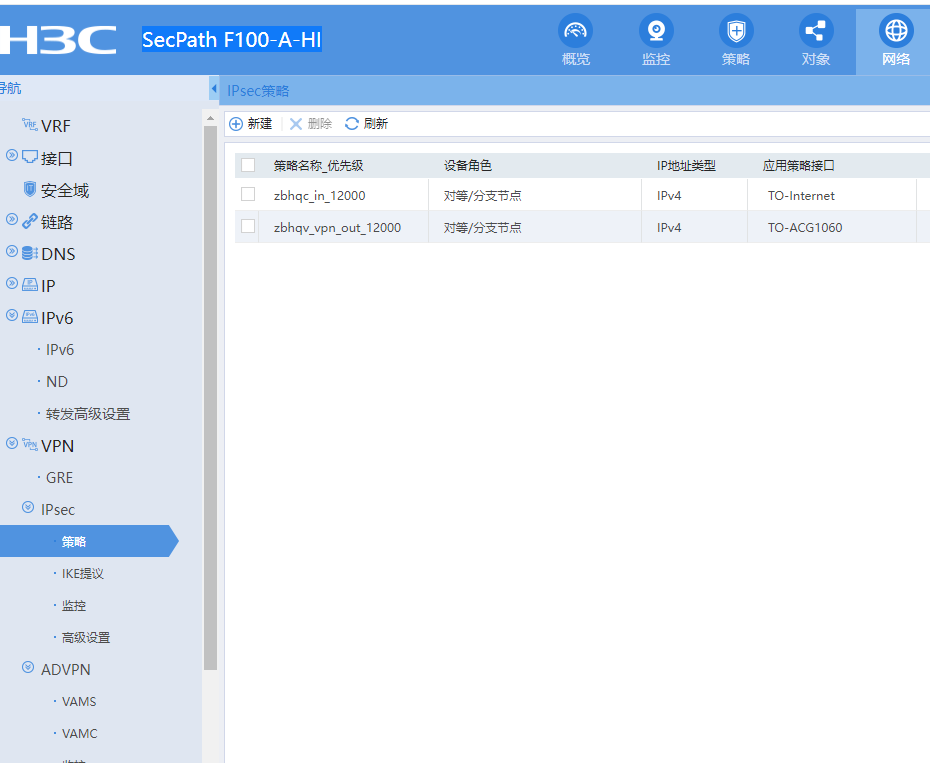 华三SecPath F100-A-HI VPN集团业务配置