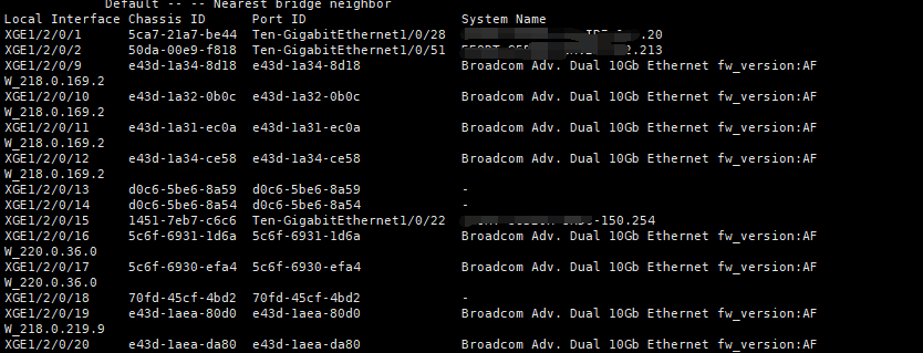 核心上的dis lldp nei list里的,XGE2/2/0/12 e43d-1a34-ce59 e43d-1a34-ce59 Broadcom Adv. Dual 10Gb Ethernet fw_version:AFW_218.0.169.2 这个对端是什么意思