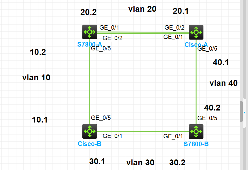 如下图口字形组网,每2交换机之间一个vlan,接口都是ACCESS口,这种组网应该是没环的,因为access口不会传输别的接口的vlan数据,是没环的