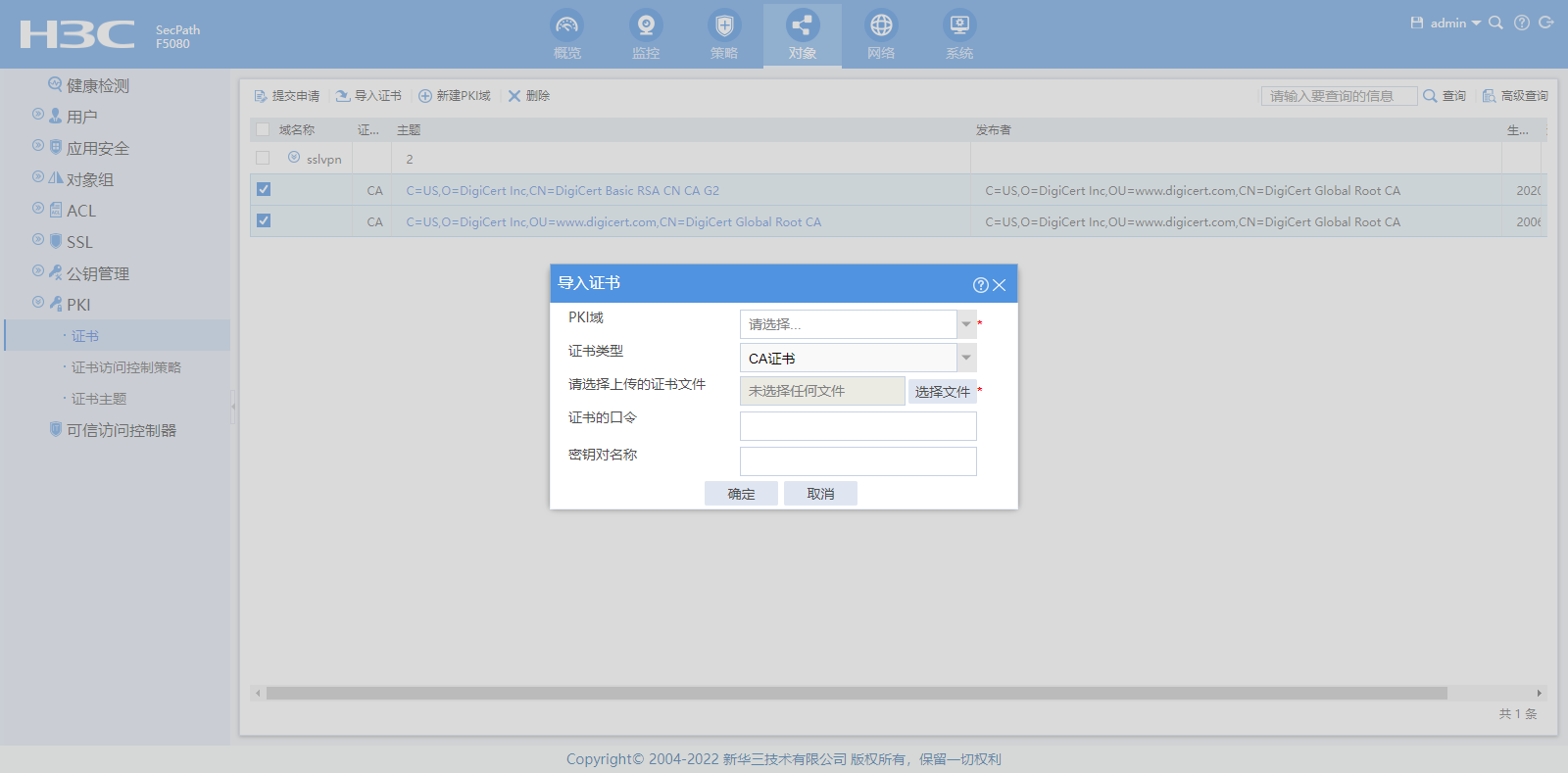 <H3C>tftp 192.168.60.20 get client.crt //再次导入合成后的证书文件client.crt