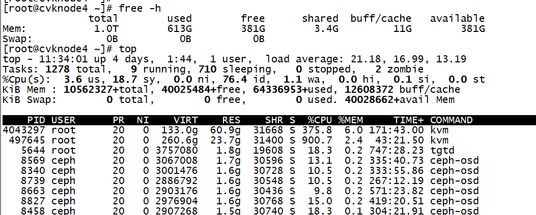 是因为node4开启了大页内存导致的,关闭大页内存,重启主机后恢复。