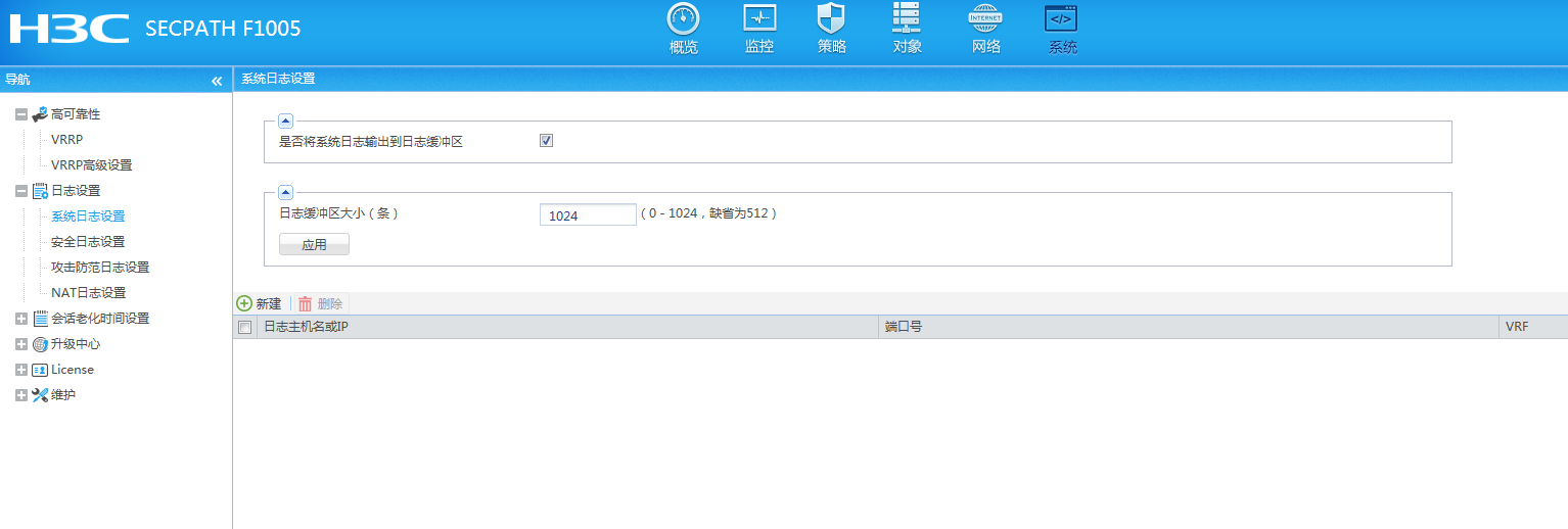请问一下,SECPATH F1005如何设置日志发送到指定的电脑上?