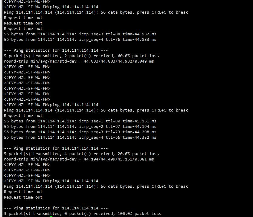 如上图,防火墙接PPPOE时,前几个都会丢包,是啥原因,下面的终端上公网也不正常