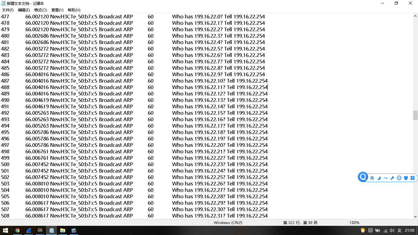 159 63.573172 NewH3CTe_50:b7:c5 Broadcast ARP 60 Who has 199.16.22.0? Tell 199.16.22.254