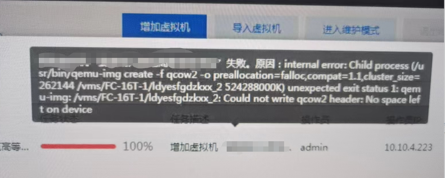 看着像空间不足,可以尝试底层查看下: