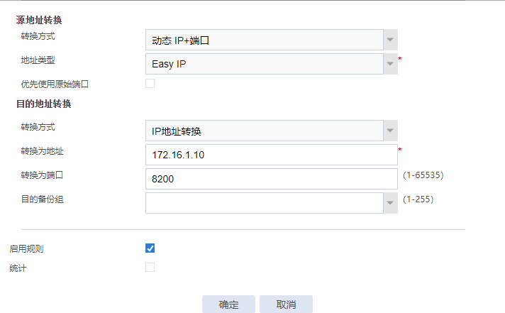 内网接口命令行配置了nat hairpin enable,安全策略如下: