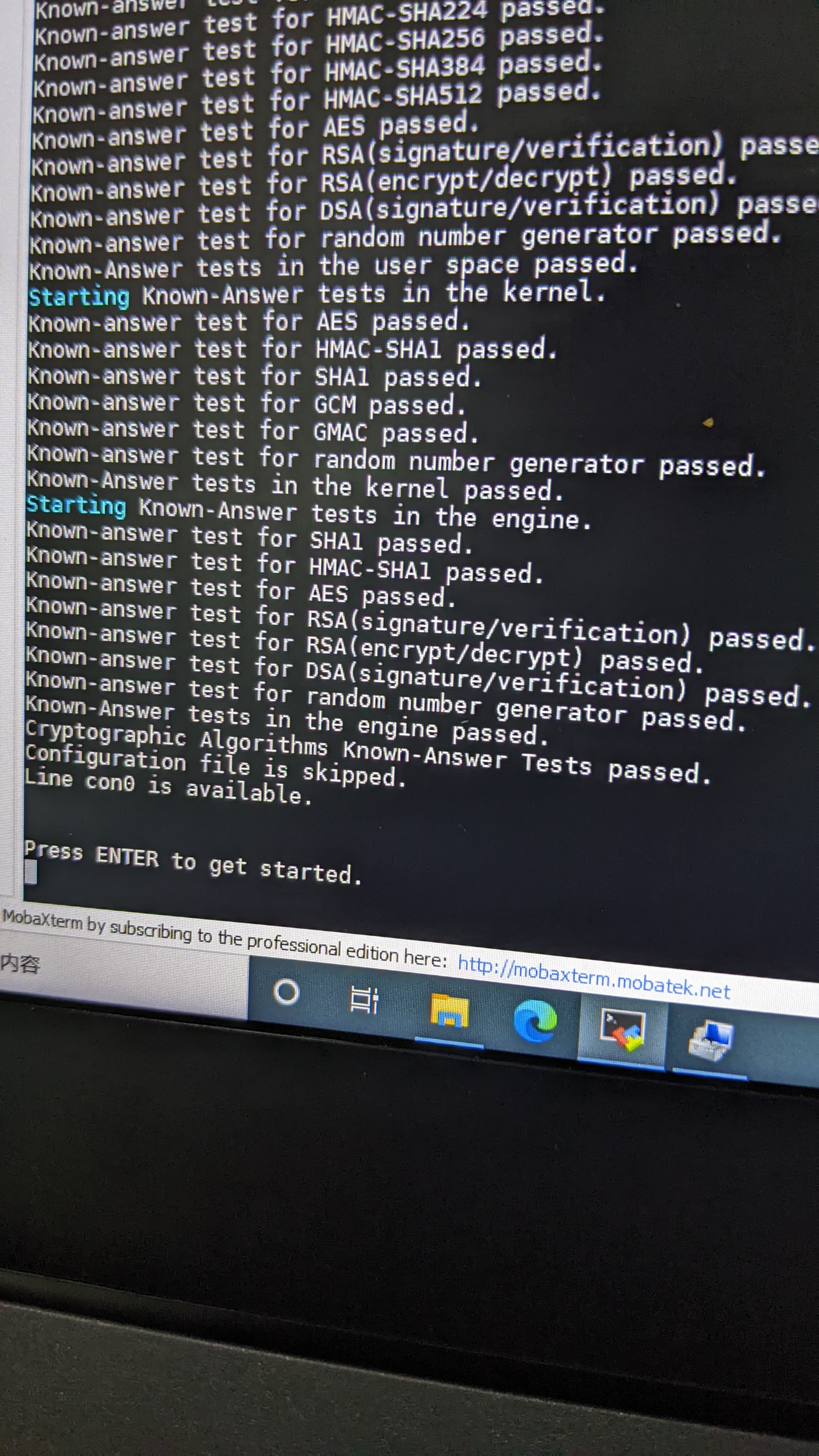 你在下面这个图显示“press enter to get start”的时候敲一下回车,看看后面输出的是什么
