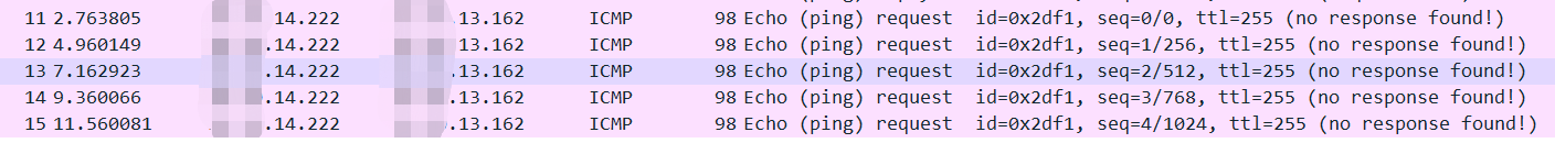 在B ping A时查看防火墙无会话记录,写acl匹配原目地址在防火墙抓包能收到B ping A的请求包