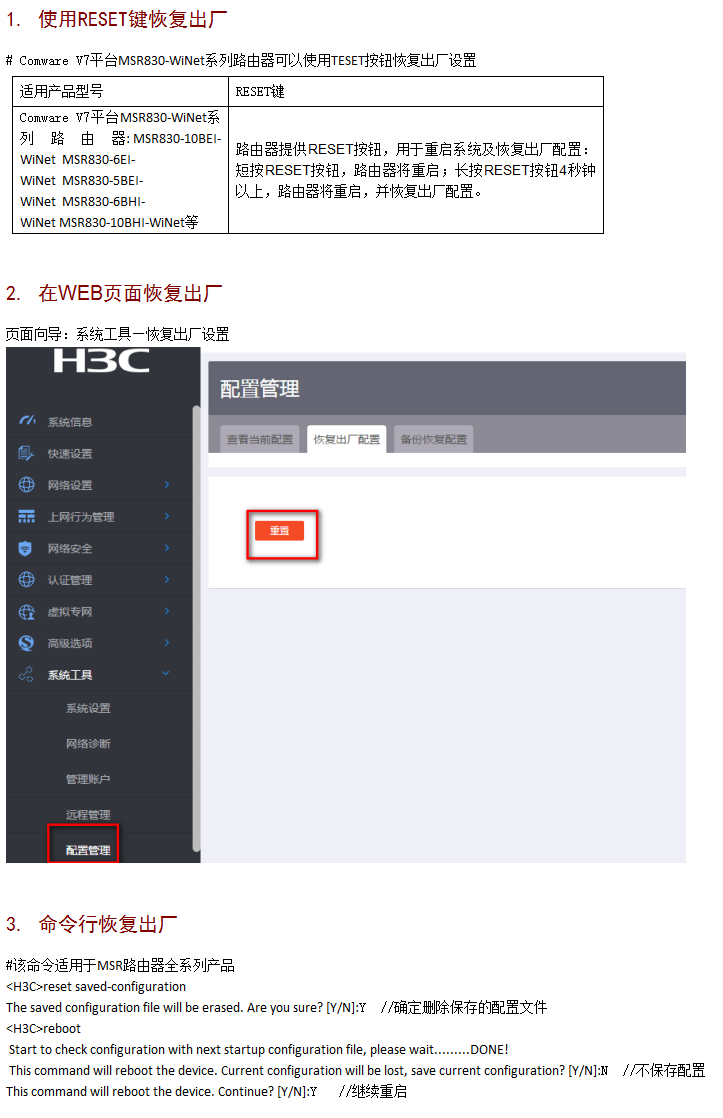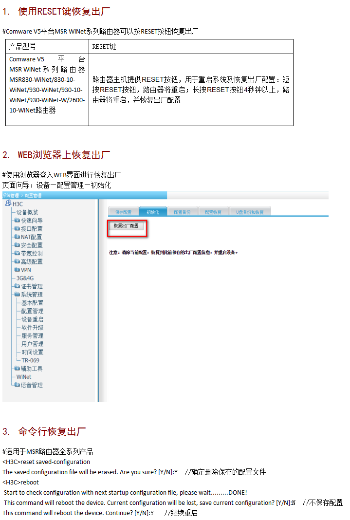 华三企业路由该怎么恢复出厂设置