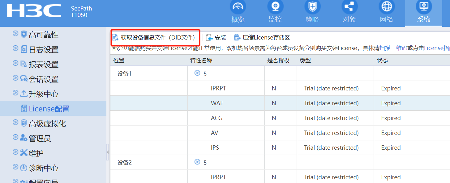 web界面可以直接导出,系统---license配置-获取did