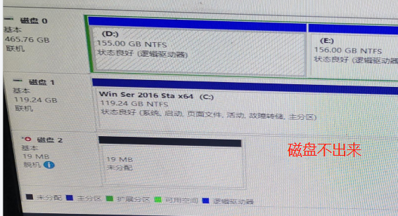 原来有一台服务器安装的是windows2003,可以正常挂载iscsi磁盘,现在另外一台安装了windows2016,iscci发起程序连接存储服务器已连接,但是挂载不了磁盘,磁盘管理里面磁盘不出来,求指导!
