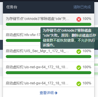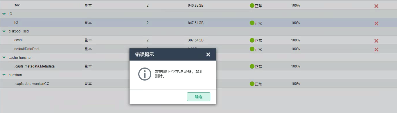 这个“IO”挂载到主机也给去掉了,然后块设备管理里面也给删掉了对应的块设备,删除副本的时候提示如图3,