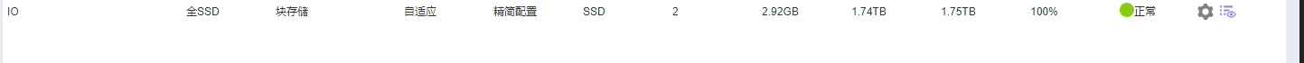 在硬盘池里面创建了个块存储,精简配置,放了两个SSD盘进去,如图1;