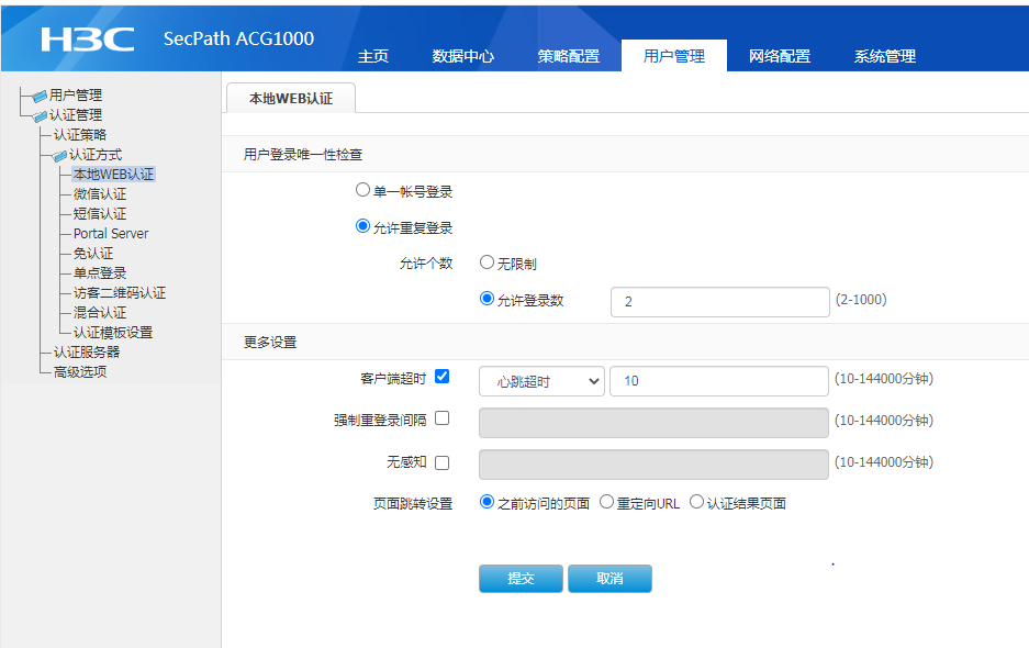 ACG1000-AK240本地WEB认证无法跳出认证界面