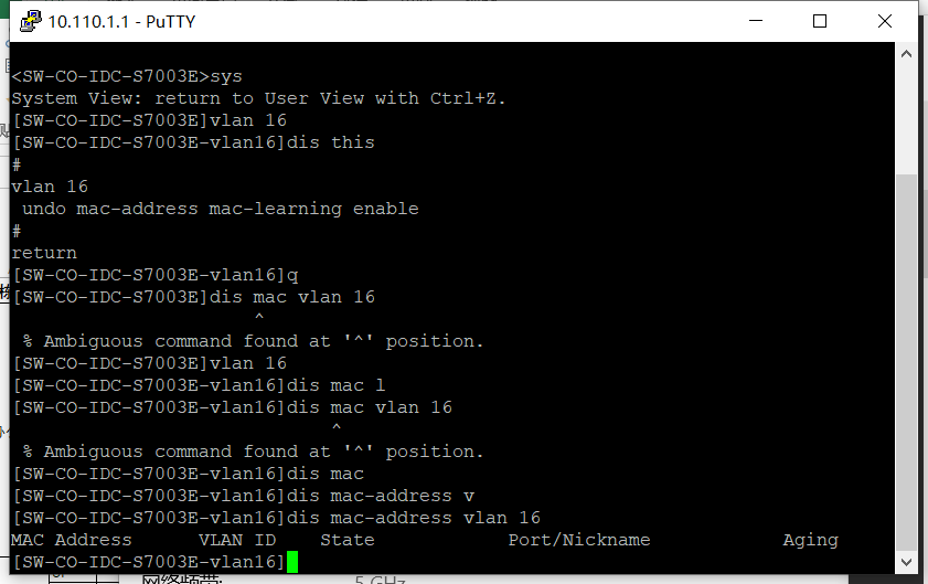 在S7003E VLAN16配置
