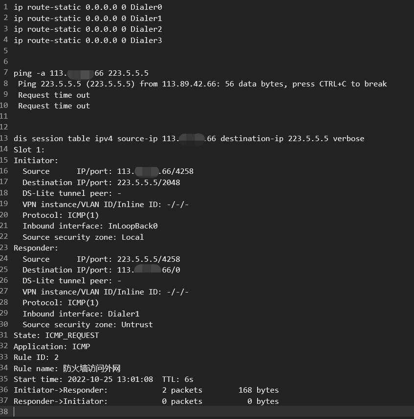 防火墙ping 带源 拨号口IP ping 外网 IP ,有发包出去,但收不到回包