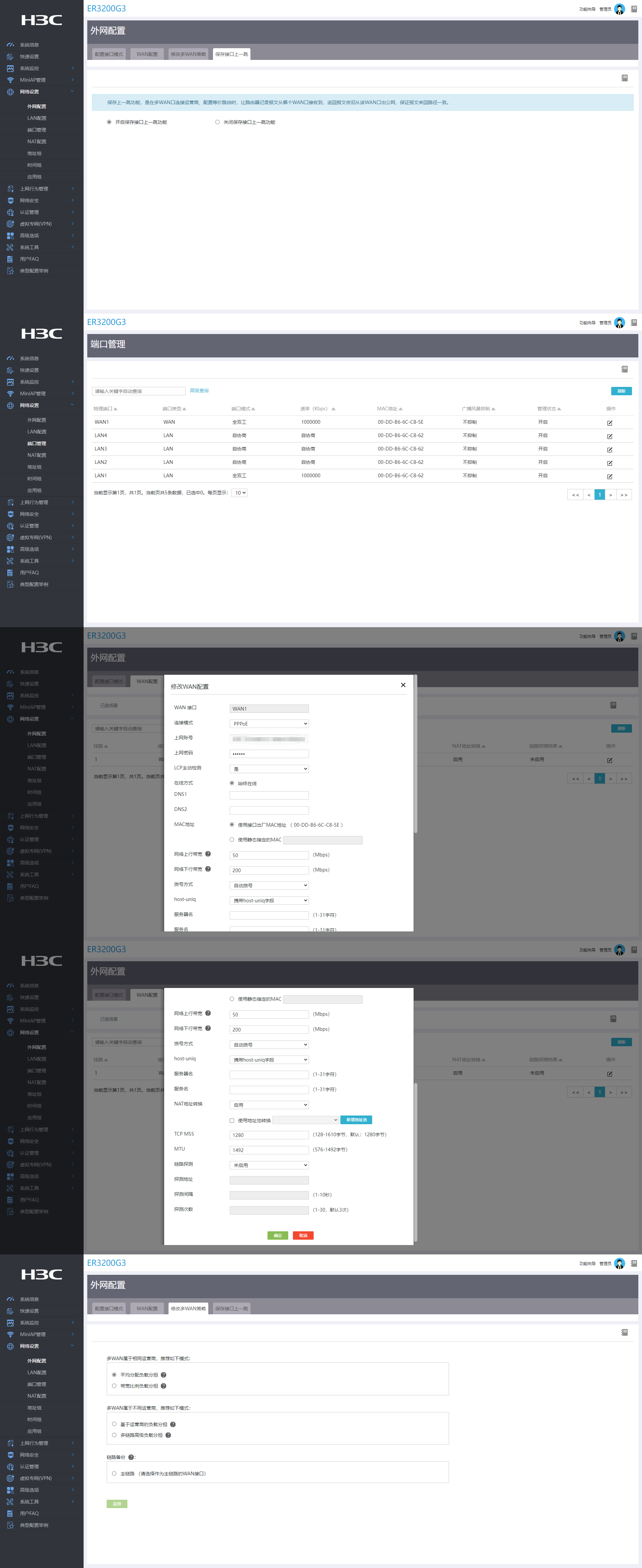 (1) 确认WAN口配置中的端口模式和速率。