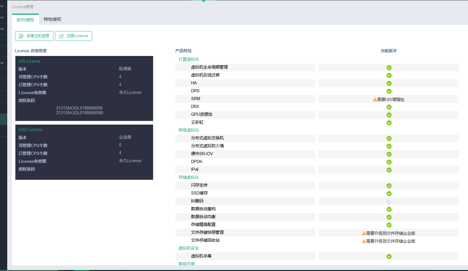 UIS 7 申请授权,在收集设备信息时 只有host信息,没有onestor信息