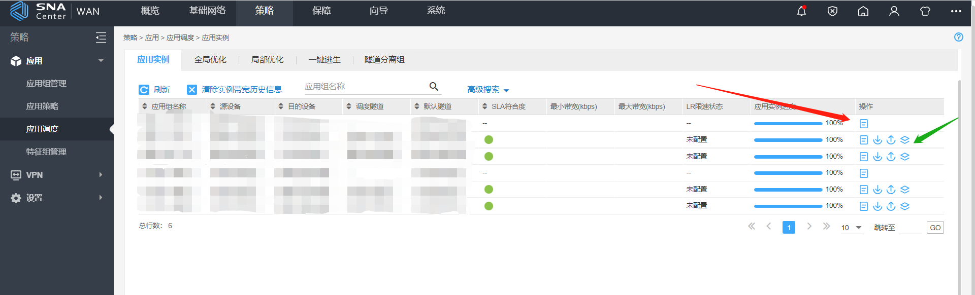 绿色箭头指向的应用组(LSA级别5, 路径建立方式自定义,调度策略下选择的是调度)————————4个小图标,分别是实例详情、配置最小带宽、配置最大带宽、和和和和和和 路径约束及部署这个功能