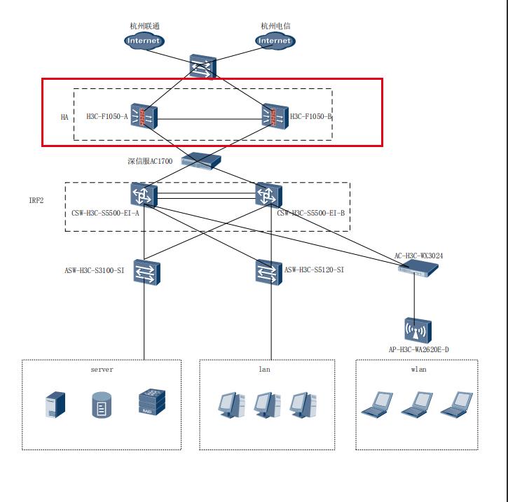 拓扑图如下,F1050 做了HA,但是只给了一个IP地址,请问做了HA后,只有一个管理IP了吗?我如果用SSH管理这个IP地址,两台设备的配置会完全同步吗