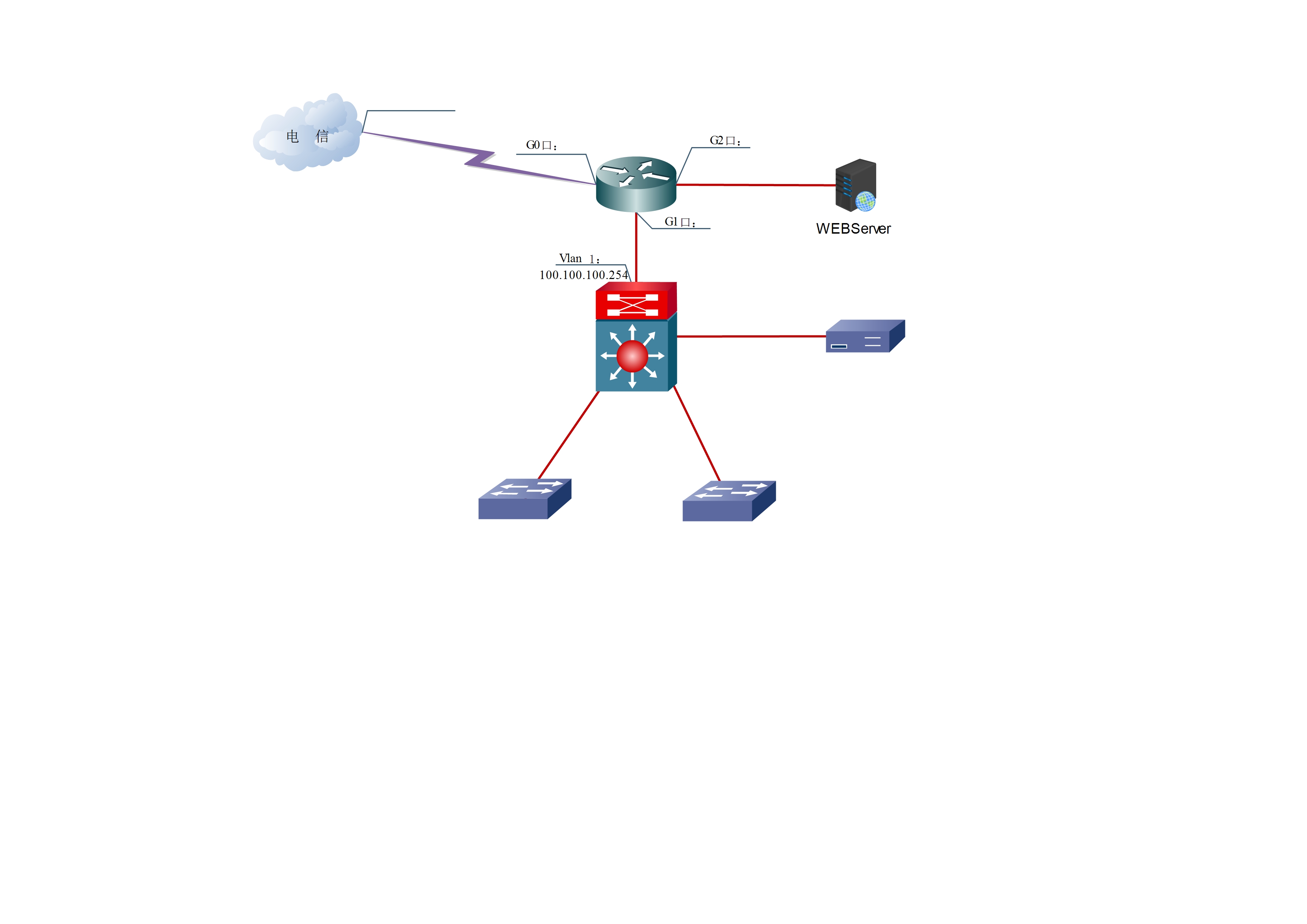 三层交换一条默认指向了路由器的G1口,也就是ip route 0.0.0.0 0.0.0.0 100.100.100.1。路由器中往三层交换中各个网段也写了明细路由,我三层交换中有个vlan 15网段(192.168.15.0),这个15网段都可以上网的。但是L2TP连通了后,远程ping测试只能到达路由器100.100.100.1,ping 100.100.100.254都到不了。这两天一直在找故障,还是不得解。