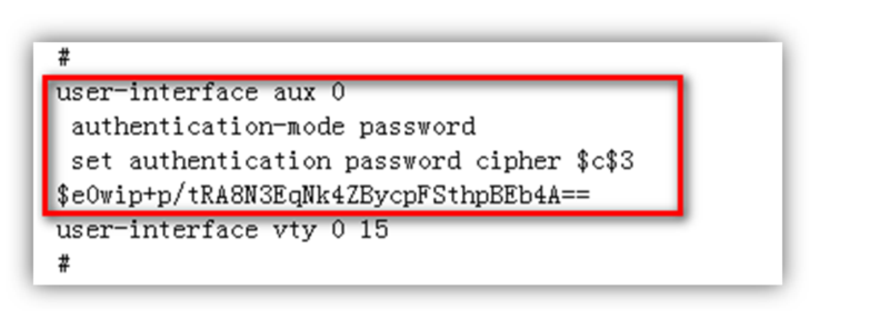 删除aux0口下的认证方式和密码并保存文件