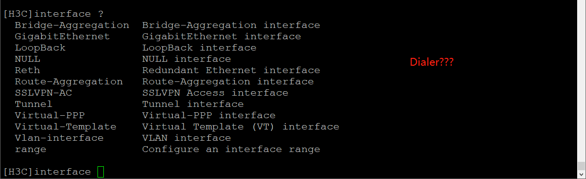 [H3C]ip route-static 0.0.0.0 0 dialer 1