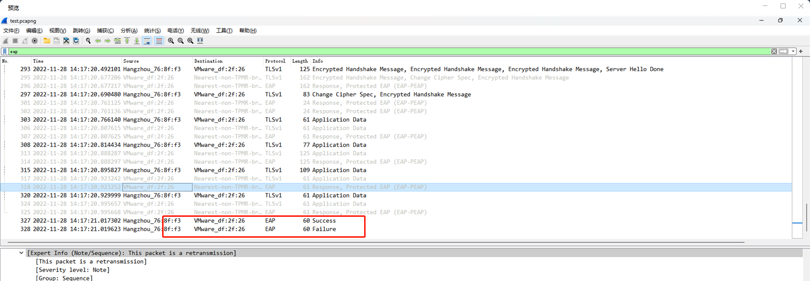 采用外部第三方服务器作为radius服务器,终端认证成功但网络不通,检查交换机日志提示errcode=0,终端上抓包发现交换机返回了认证成功的报文立马又跟着返回了一个认证失败的报文。