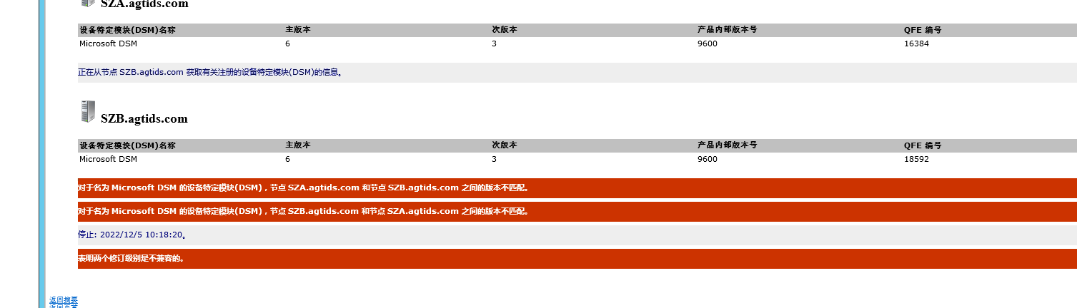R4900g3连接MSA1060 Iscsi存储,映射,多路径都没有问题。搭建集群环境。提示版本不兼容。查看WIN版本都是一样的,请教各位老师!