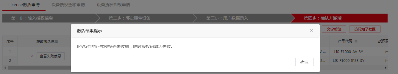 -----------IPS特性的正式授权码未过期,临时授权码激活失败。