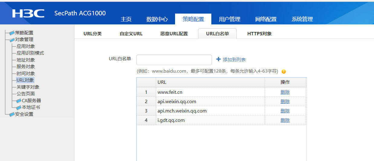 一、ACG1000上URL过滤白名单功能配置