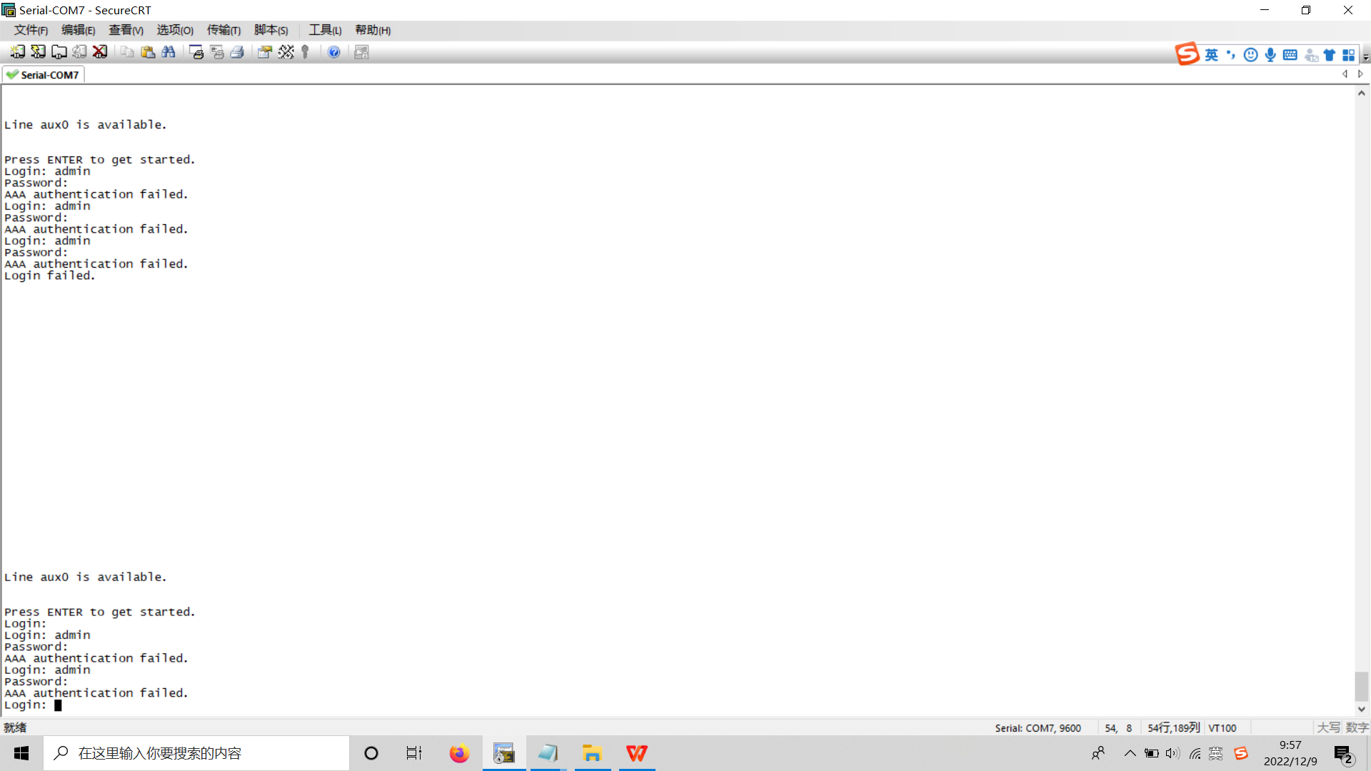 在交换机上设置了密码。然后退出重新登录显示密码输入错误,报这个错是怎么回事?
