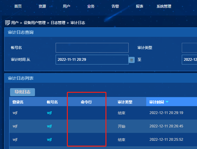 网络设备使用TACACS在IMC上进行认证,但是并无审计记录,如下图所示,有审计开始和结束记录,但是命令行一列为空。