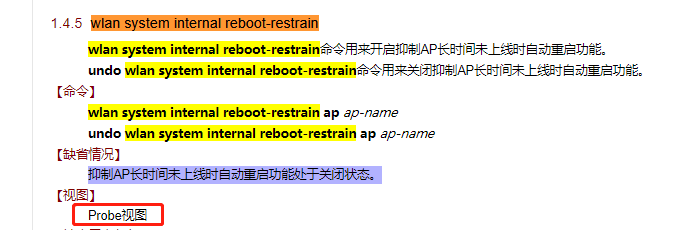 reboot-restrain   Restrain auto AP reboot after 10-minute offline