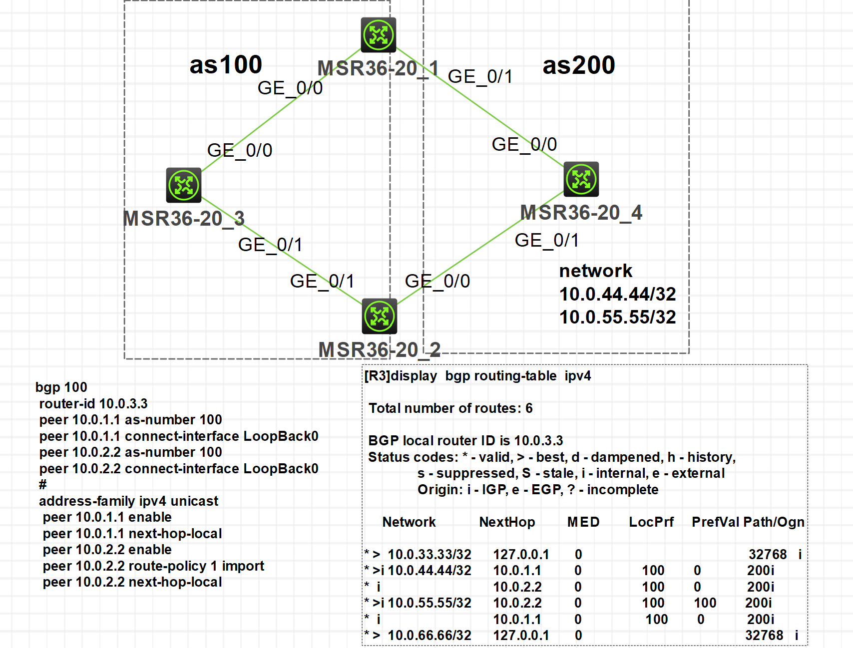 现在在R3上配置路由策略通过修改preferred-value从而在BGP进程中调用,但是发现方向的问题,好像只能是import?修改为export没有效果,这是为什么?这一点有点迷惑?明白该属性仅本地有效,不传播任何BGP邻居,仅仅影响的是自己,就想询问的是这个方向的问题?