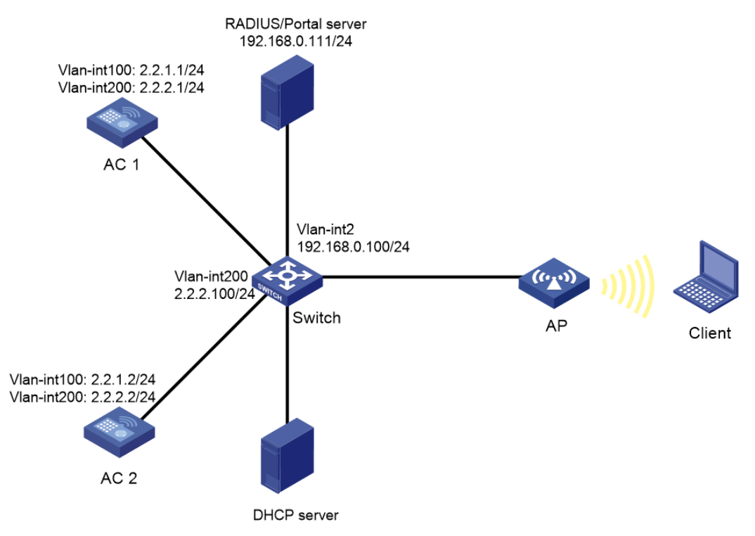 无线控制器双链路备份组网的本地转发模式下远程Portal认证