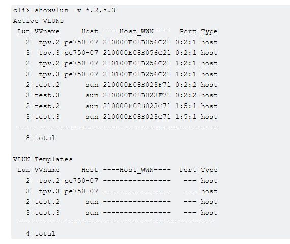 3par命令showvlun的ID“1”和“257”分别代表什么意思?