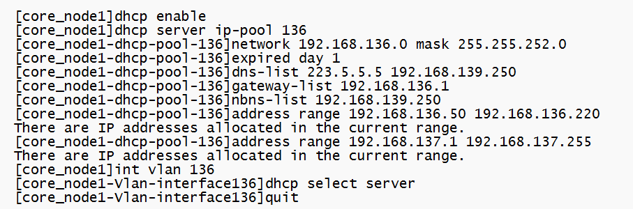 [Sysname-dhcp-pool-1] address range 192.168.8.1 192.168.8.150